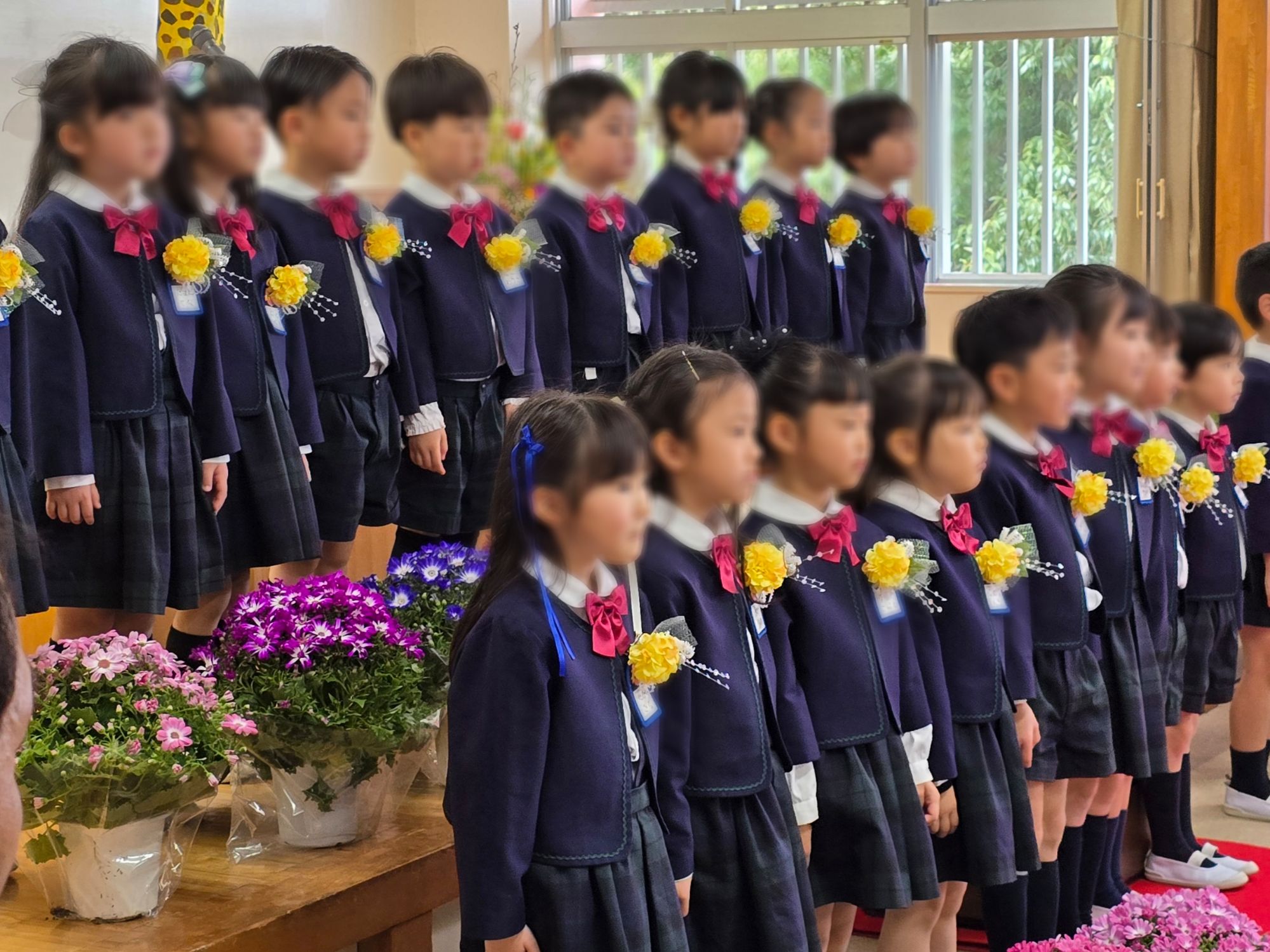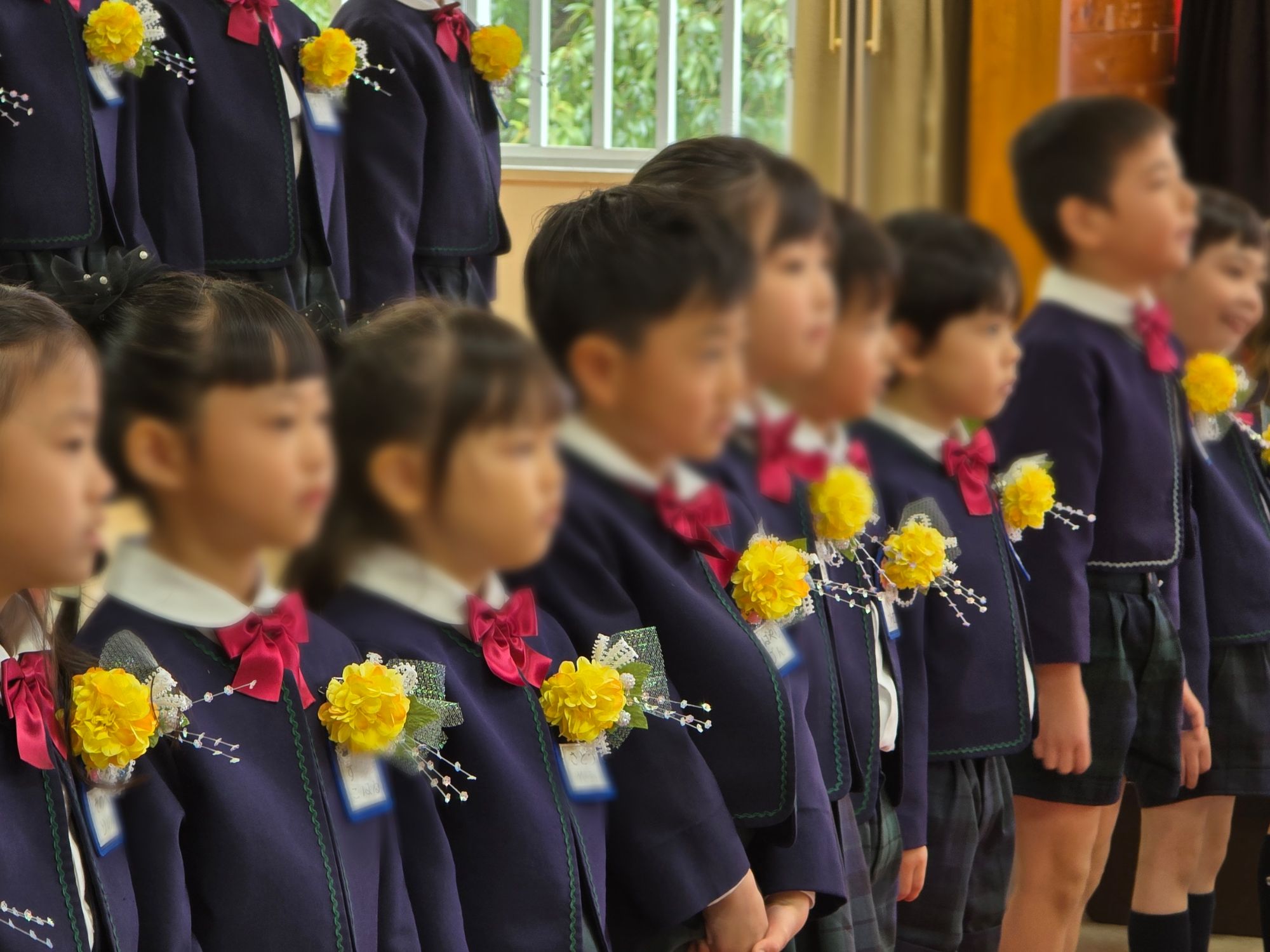 卒園式 春のやわらかな日差しの中、卒園式が行われました。少し緊張しながらも堂々と入場する子どもたちの姿に、大きな成長を感じました。歌や言葉に思いを込め、心温まるひとときとなりました。たくさんの思い出を胸に、新しい一歩を踏み出します。