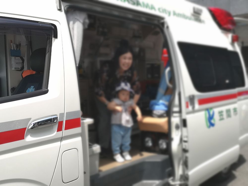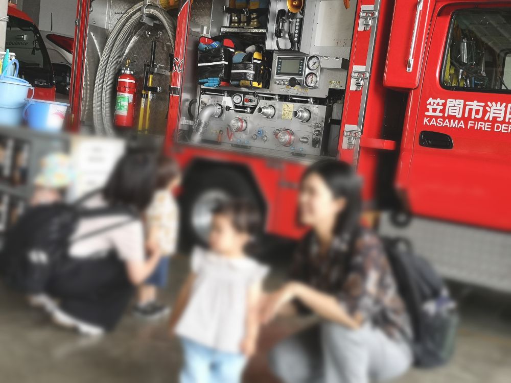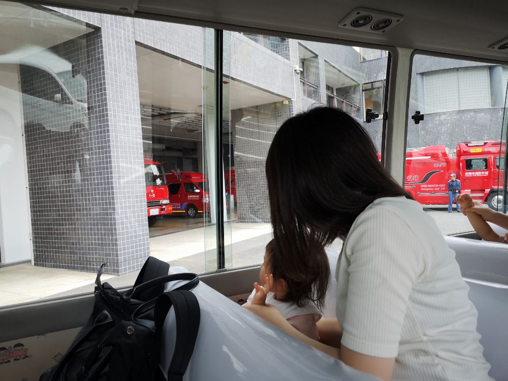 幼稚園バスに乗って消防署見学に行って来ました。本物の消防車や救急車を近くで見られて大喜びでした😊