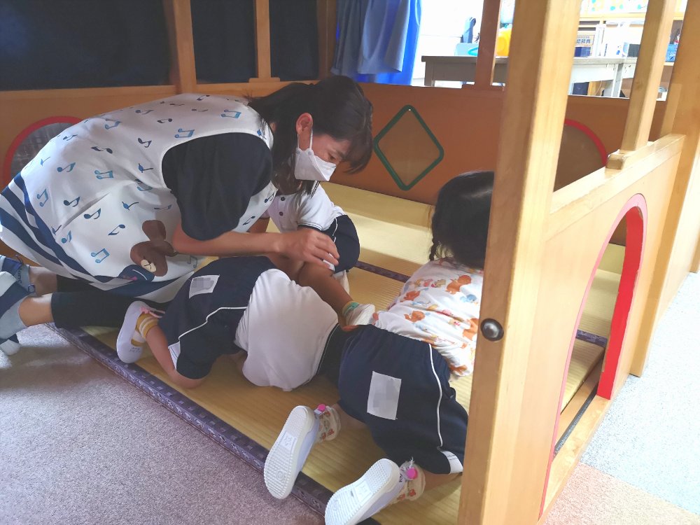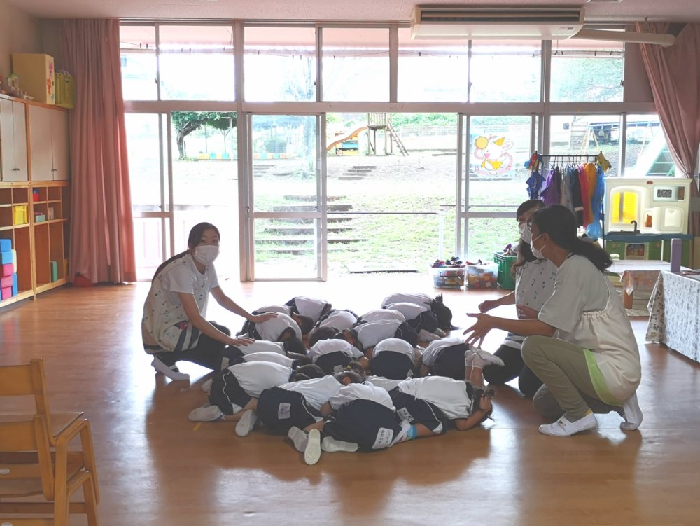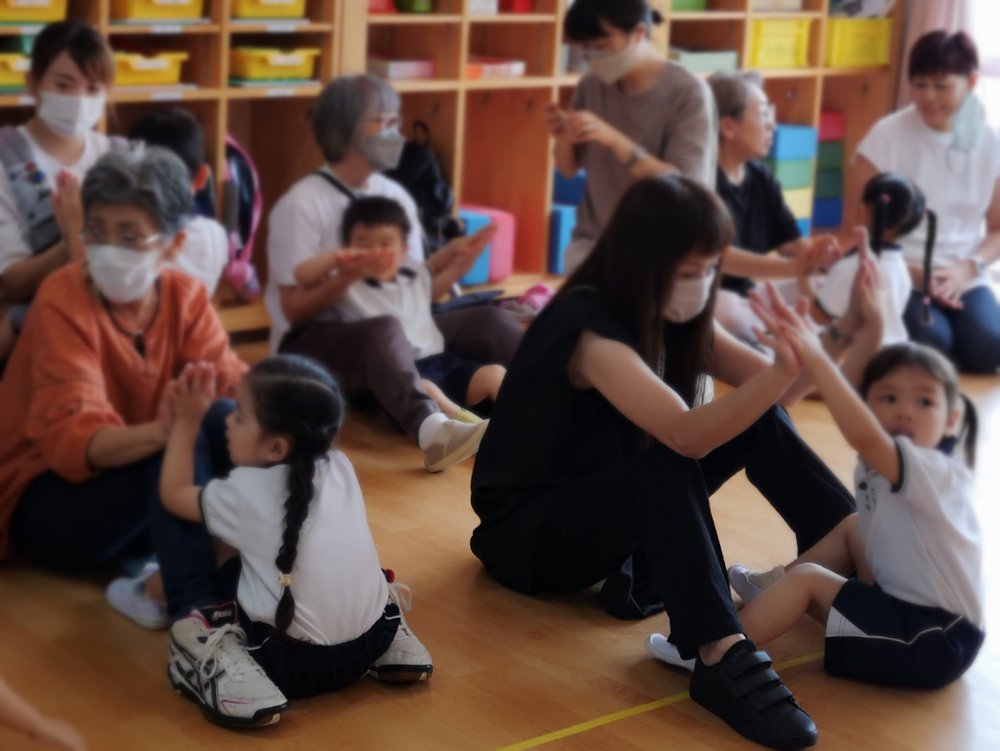 動物になりきってリトミックをしました。小さく動いたり大きく動いたり、体を使いご家族の方と一緒に楽しむことができました。