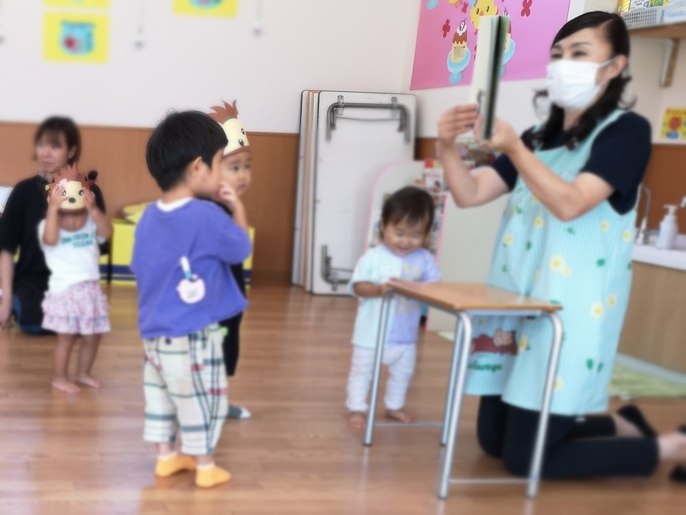 🦔かわいいハリネズミのお面をかぶって、絵本もみました。