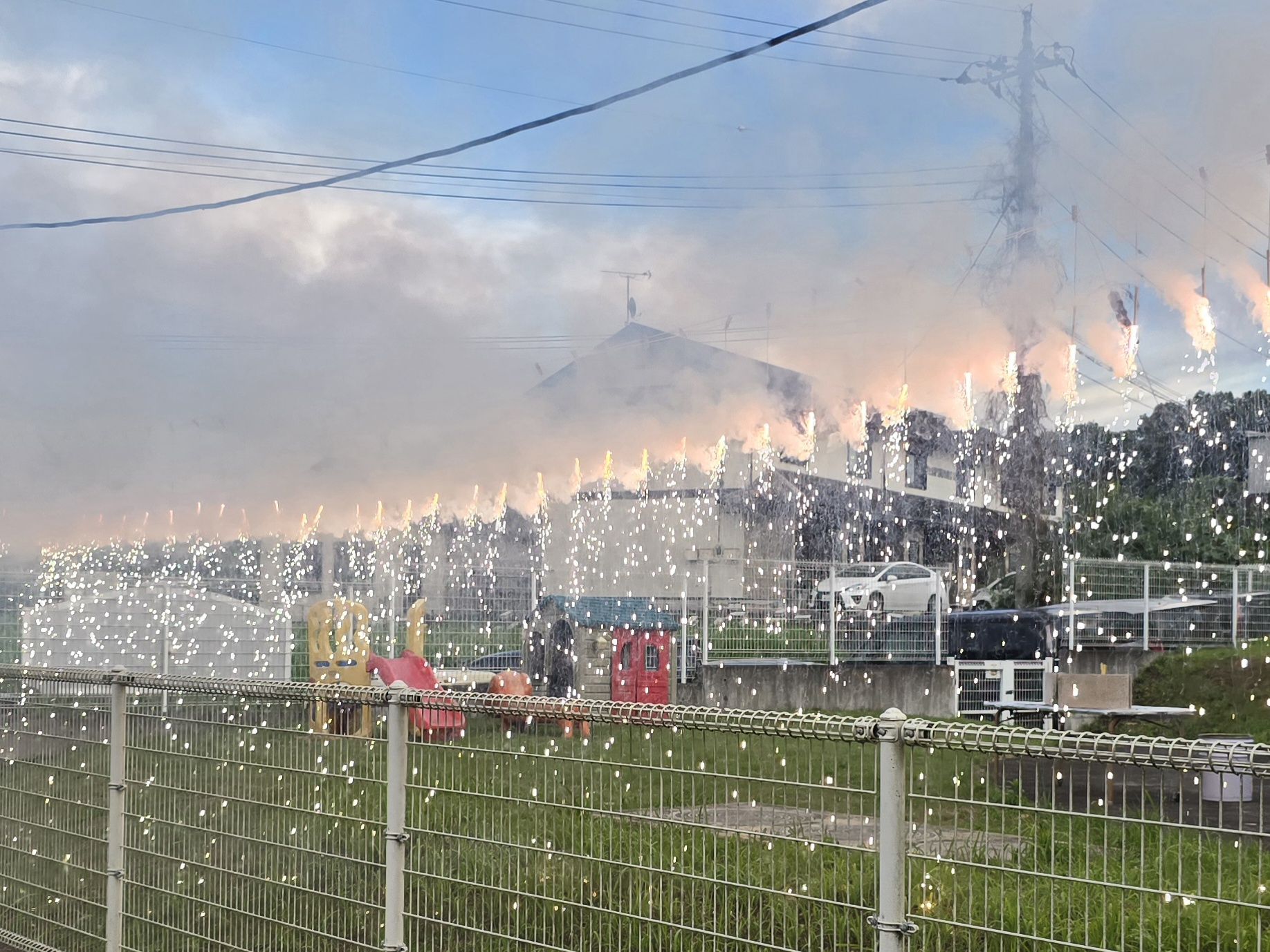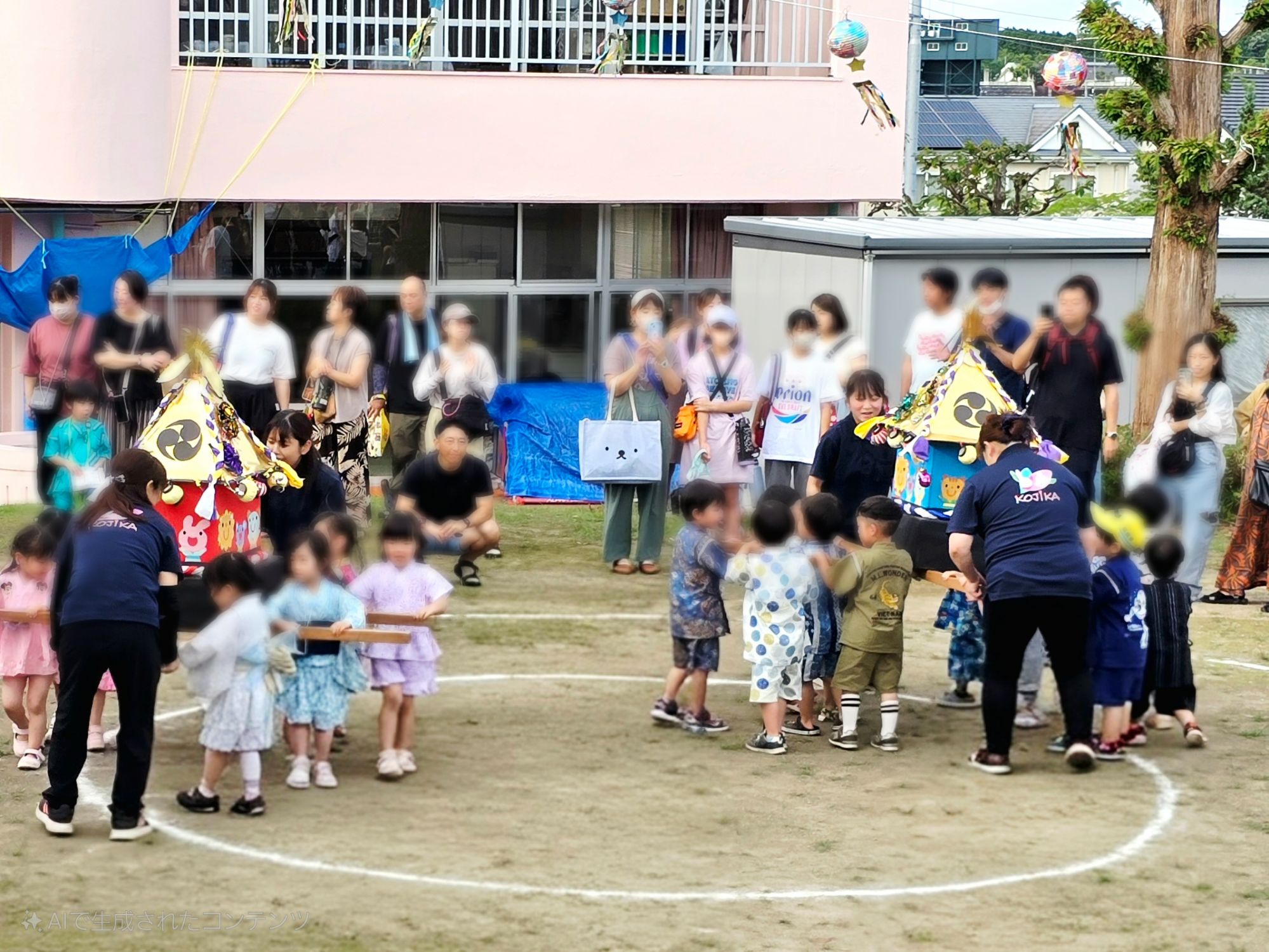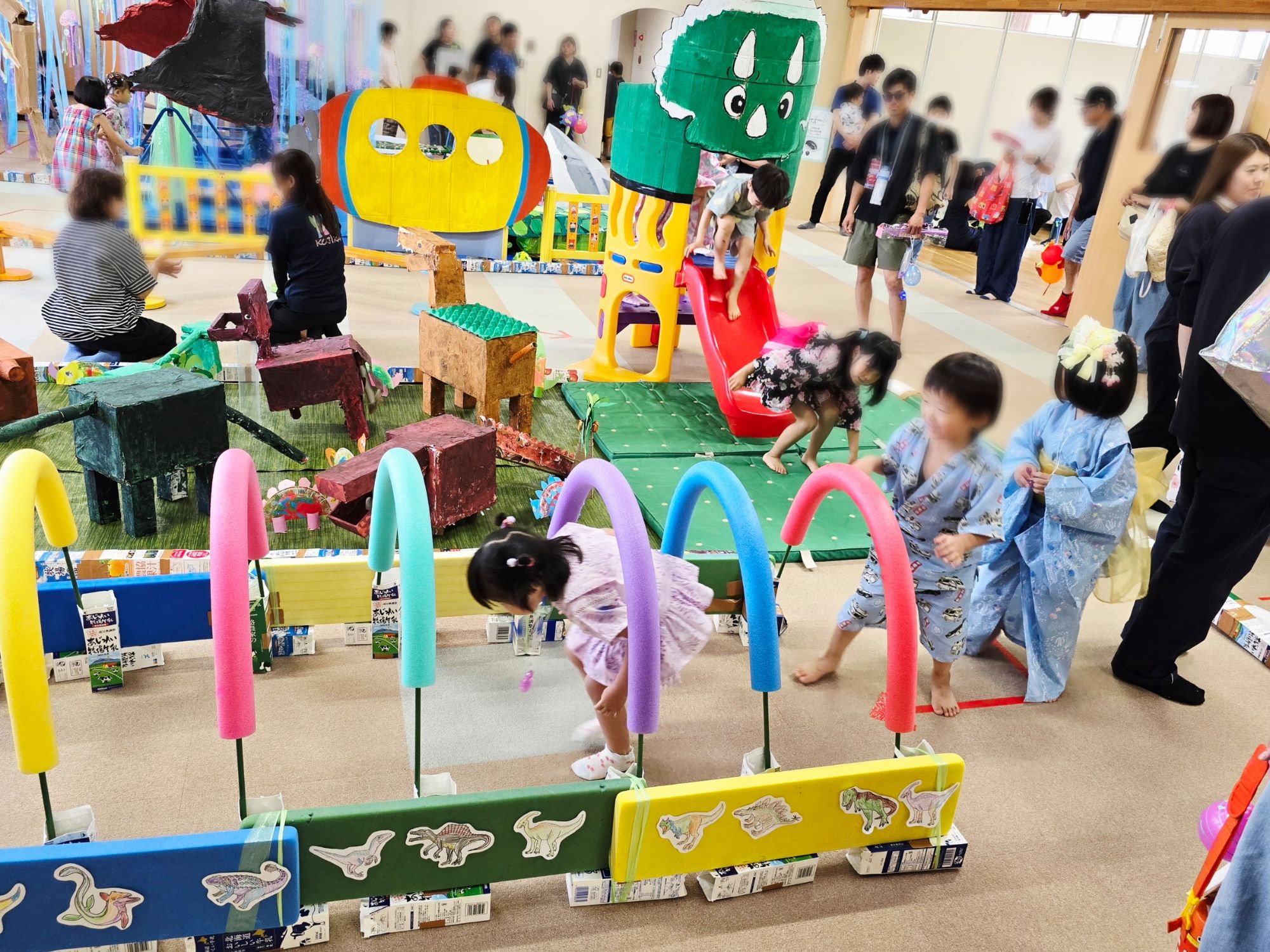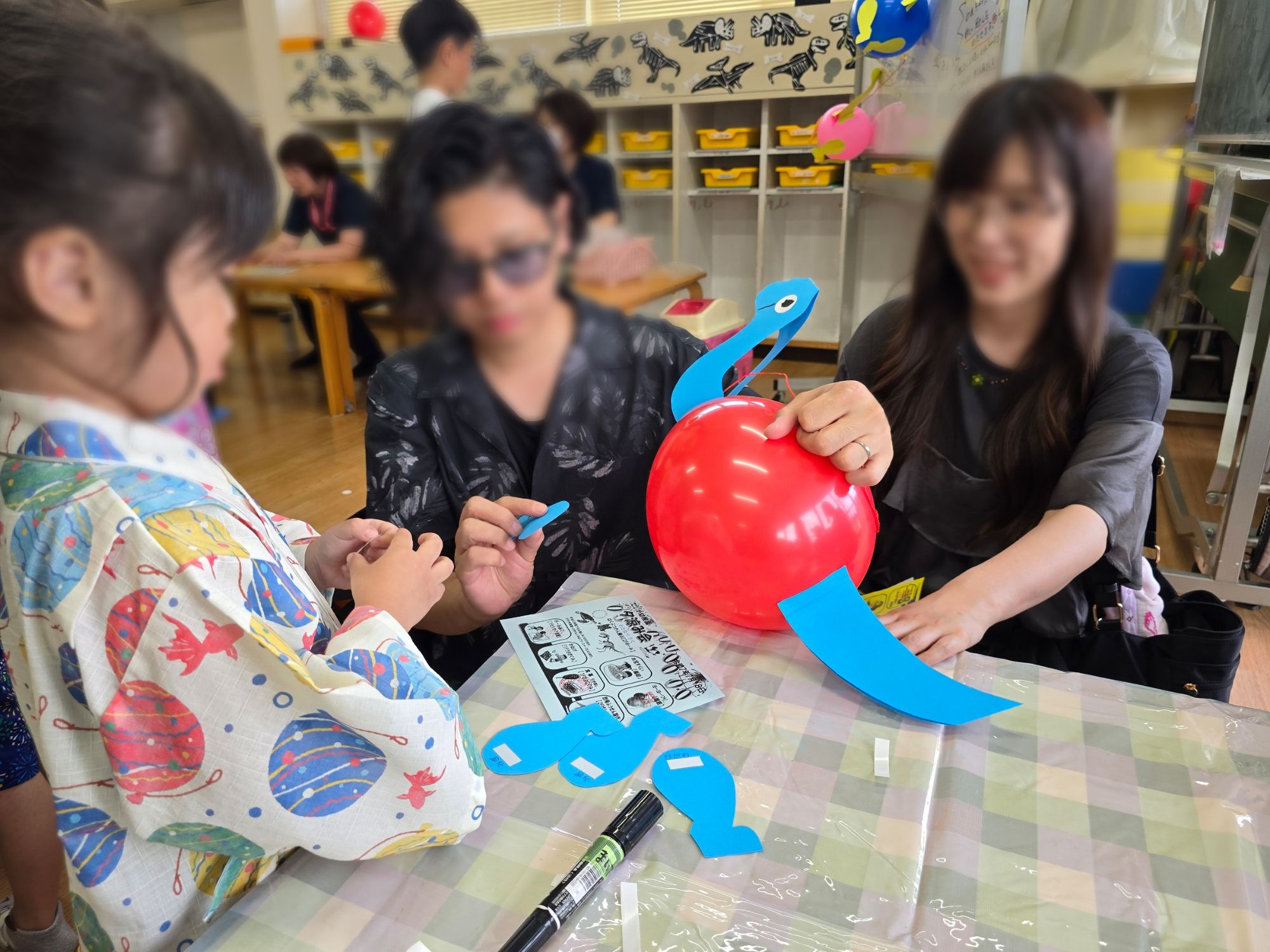 幼稚園で夕涼み会を開催しました。お神輿を元気に担ぎ、盆踊りでは笑顔いっぱいに踊る子どもたち。ヨーヨーすくいや輪投げ、まと当ても大盛り上がりでした。ホールには「博物館迷路」が登場し、子どもたちが作った恐竜や昆虫、水辺の生き物を見ながら、アスレチックを楽しむ姿が見られました。最後には打ち上げ花火を見て楽しみ、夏の思い出がたくさん詰まった楽しい一日となりました。