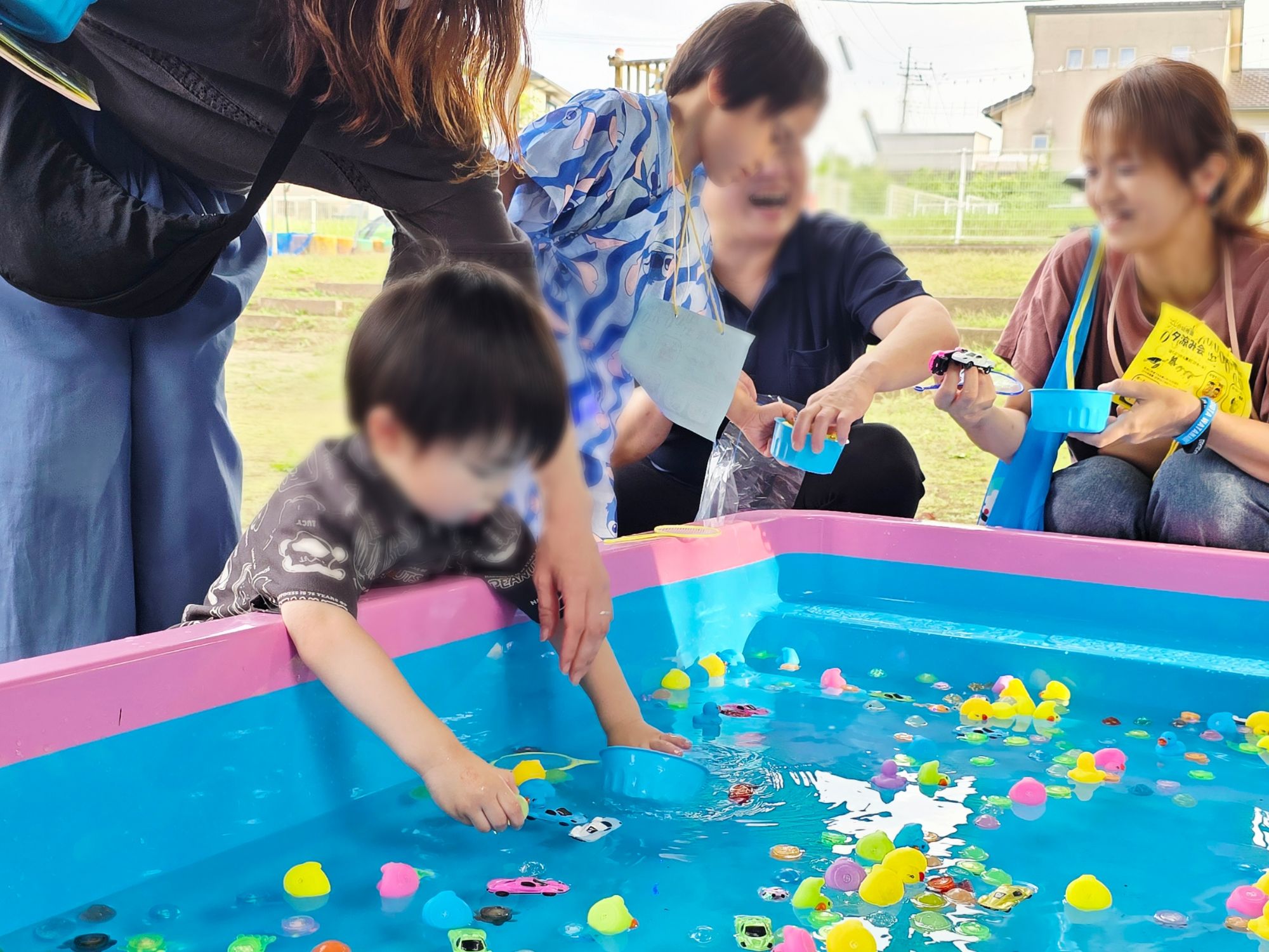 お花紙を丸めてビニール袋に入れ、目や模様のシールを貼ってかわいいお魚作りを楽しみました。自分で作った魚を釣り竿で釣ってみると、「釣れた!」と嬉しそうな声があがり、大盛り上がり。親子で一緒に製作や遊びを通して楽しいひとときを過ごし、笑顔いっぱいの活動となりました。