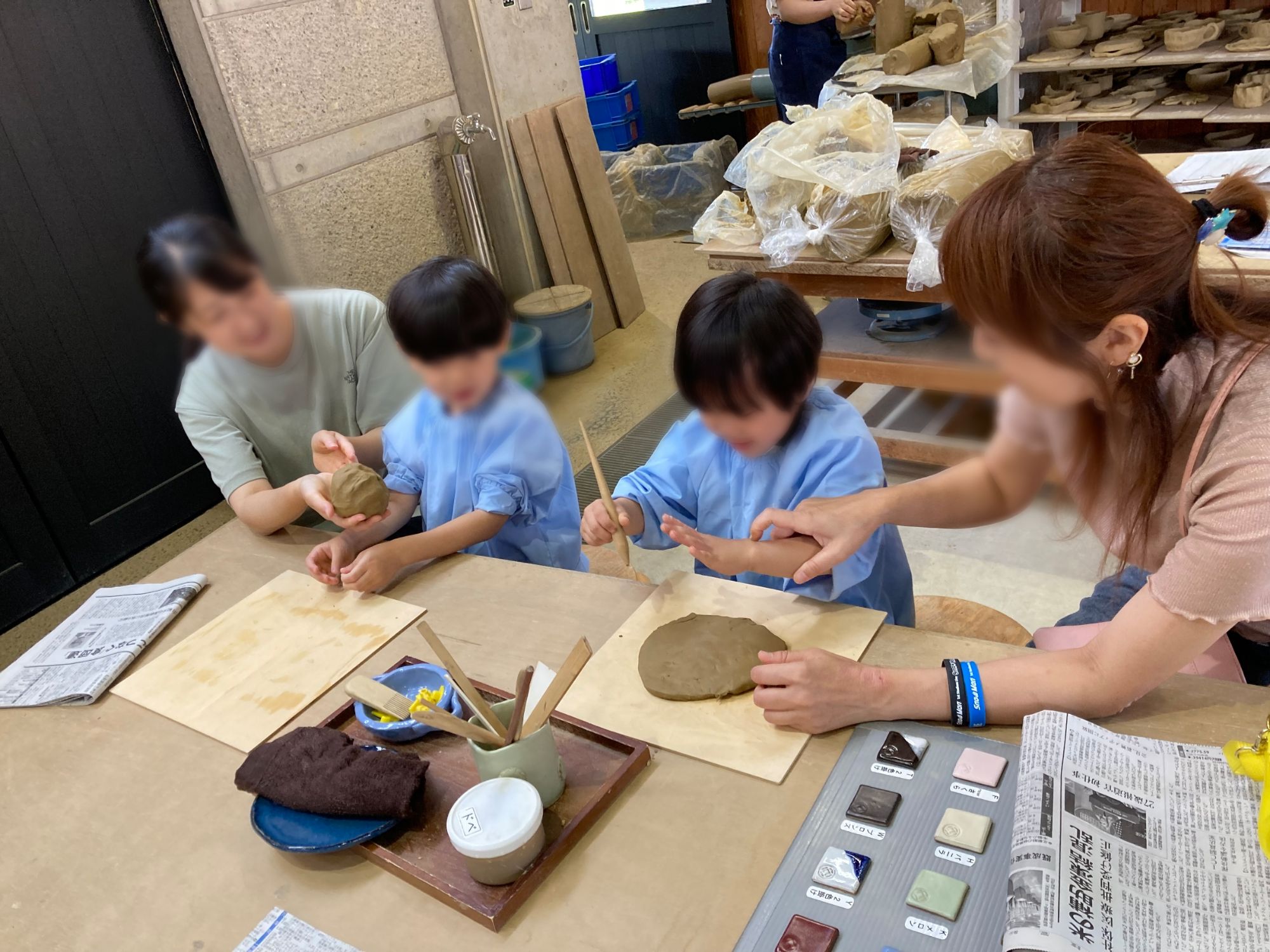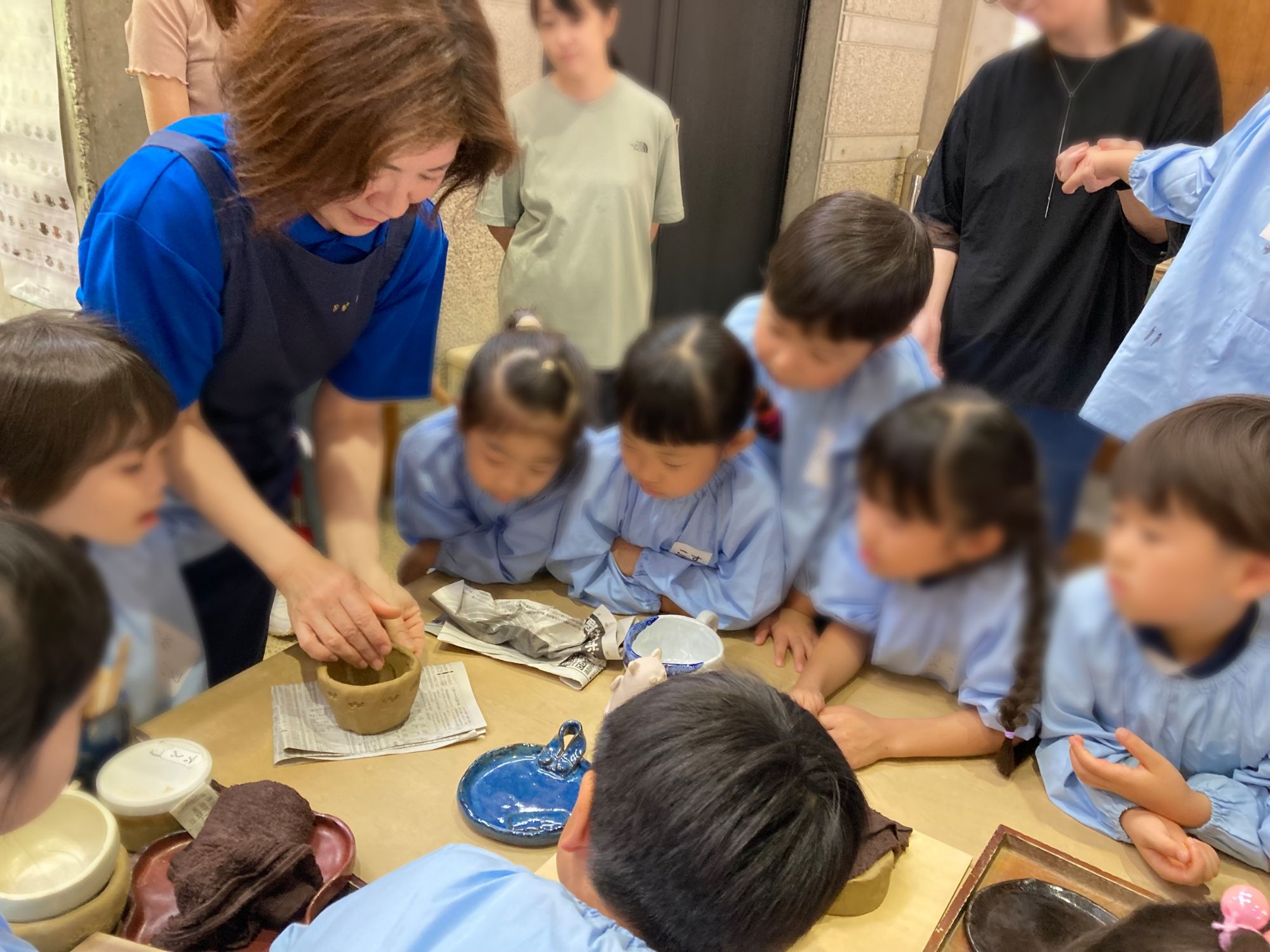 年長児の親子で陶芸教室に参加しました。土の感触を楽しみながら、一生懸命作品づくりに取り組む子どもたちの姿が印象的でした。親子で協力して形を作り、笑顔あふれる時間となりました。完成が今から楽しみです!