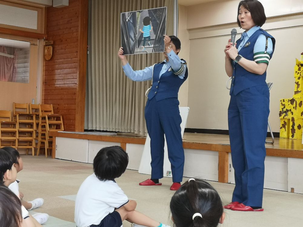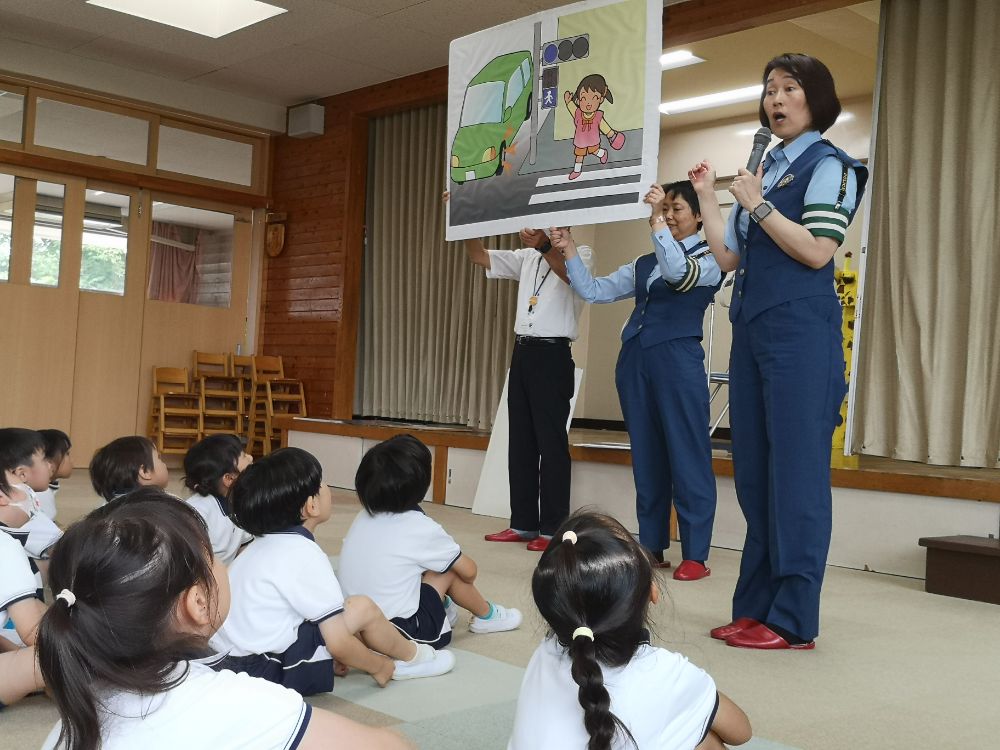 園で交通安全教室を行いました。腹話術人形のケンちゃんが来てくれ、「ピタッと止まる」「右・左をよく見る」など、横断歩道の渡り方を楽しく教えてくれました。その後は実際に横断歩道を渡る練習も行い、子どもたちは真剣な表情で取り組んでいました。日常の安全を守る大切な学びの時間となりました。
