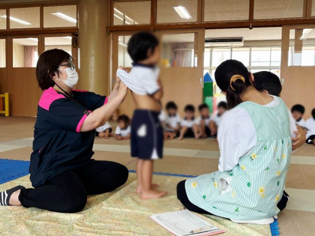 幼稚園で内科検診が行われました。子どもたちは順番を守って静かに並び、落ち着いて受診することができました。少し緊張した表情も見られましたが、先生の話をよく聞きながら頑張っている姿がとても立派でした。健やかな成長のため、今後も健康管理を大切にしていきます。