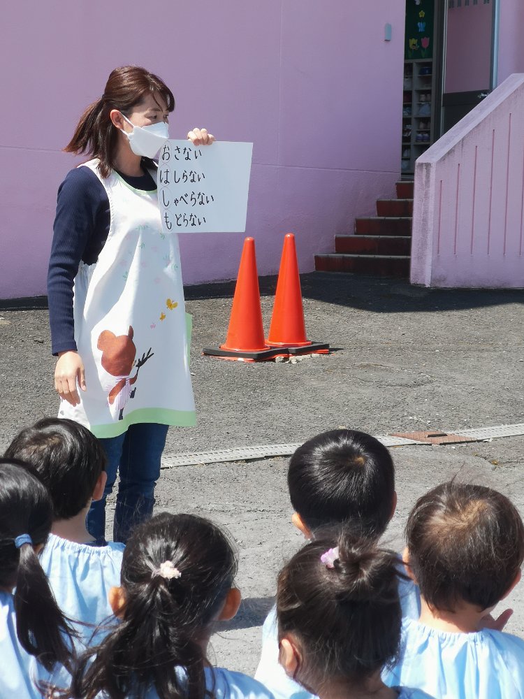 初めての大きなベルの音にびっくりしていましたが騒ぐこともなく、先生の指示に従ってスムーズに避難することが出来ました。