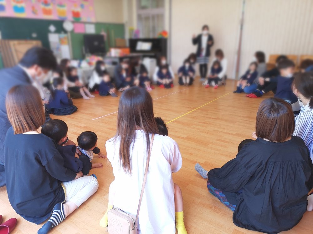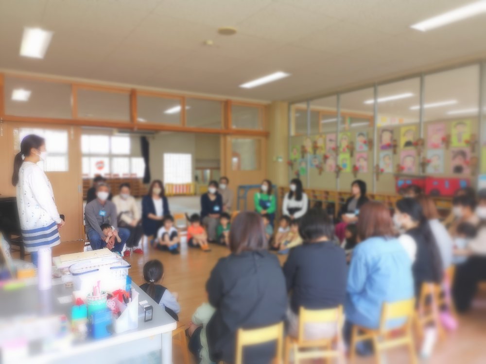 今年度初めての保育参観と言うことで、自己紹介や子供達のこと等お話していただきました。