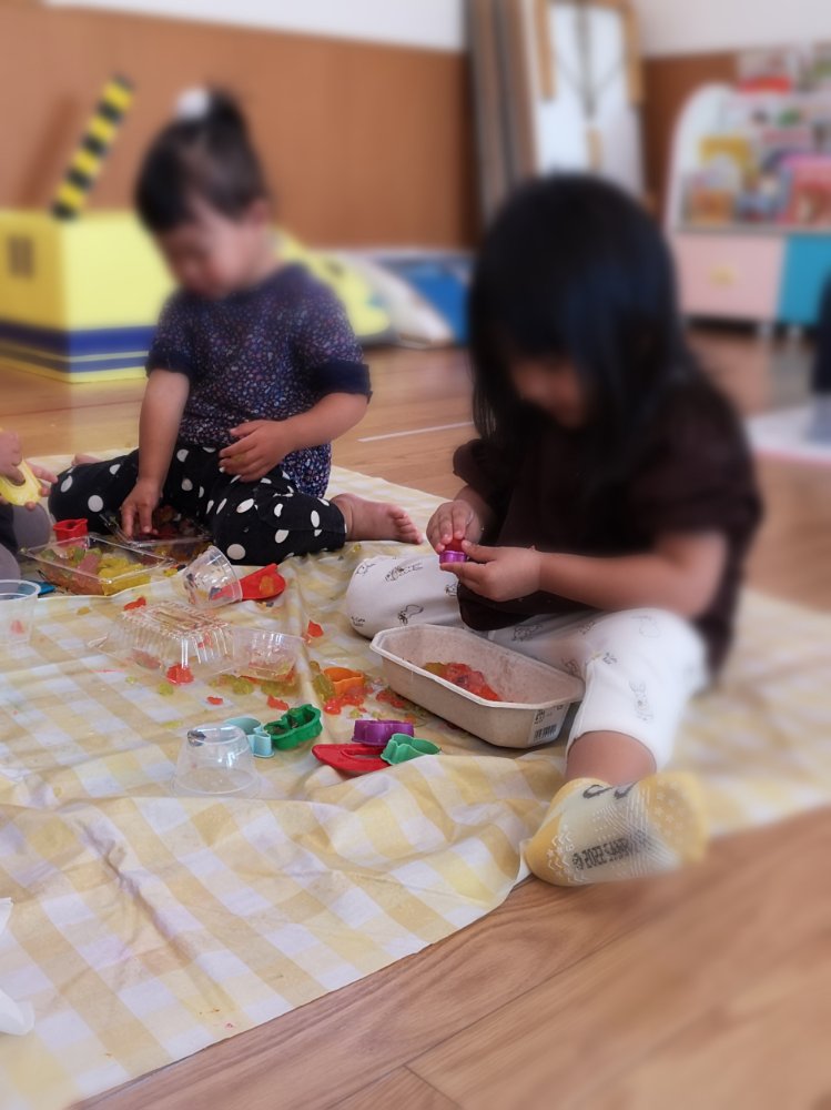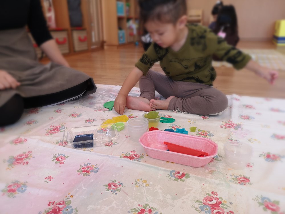 今までじっくりと触れたことのない感触に興味津々。切ったり型をとったり混ぜてみたりして楽しみました。