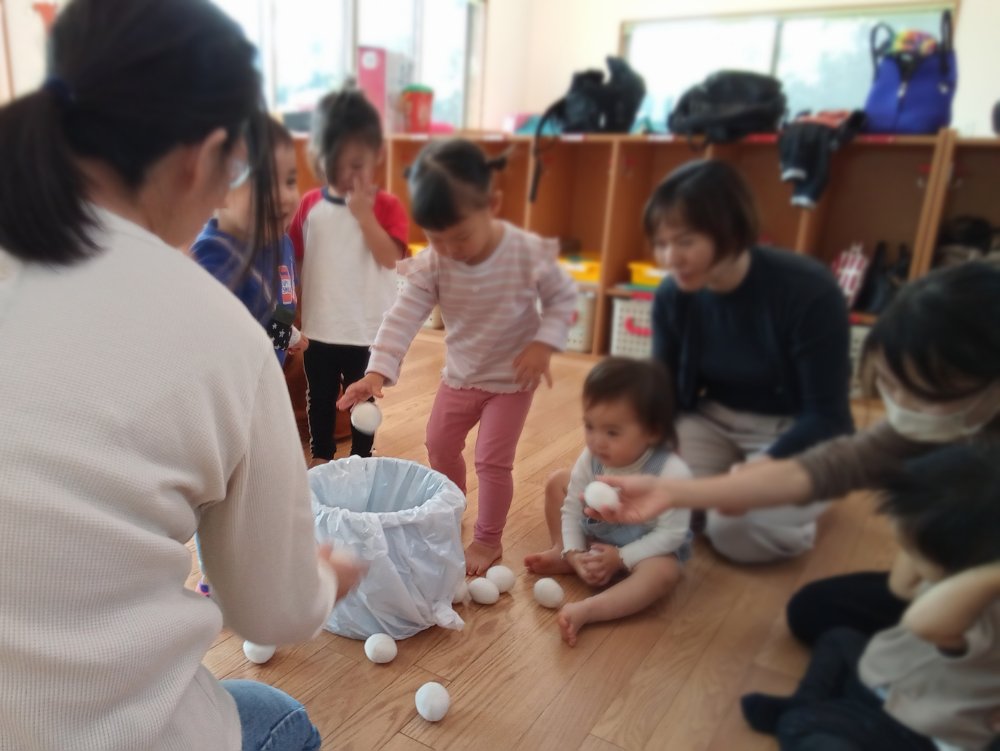 玉入れ、バルーン、ボール運び競争、かけっこ。