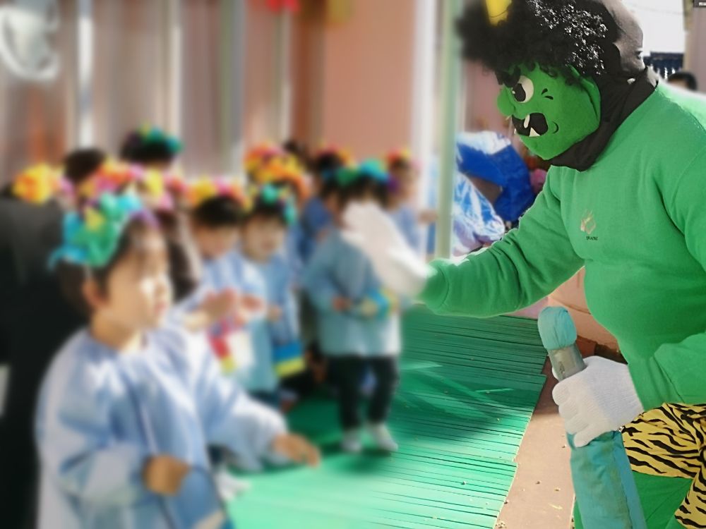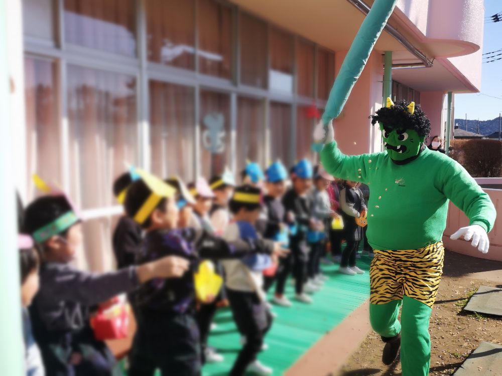 まだまだ寒い日が続いていますが、暦の上では春となりました。園に鬼がやってきましたが、子ども達の豆まきで心優しい鬼になり最後はみんなと握手出来ました。